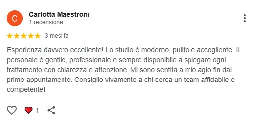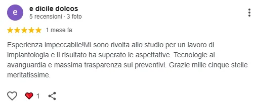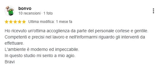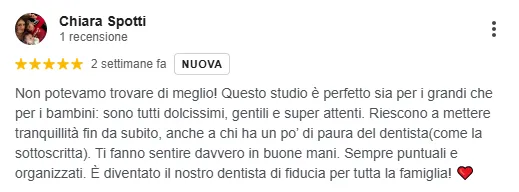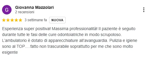 "Avevo alcuni molari da dover rimattere. Il dott. Secondini mi ha aiutata a risolvere il problema in pochi mesi. Sono davvero soddisfatta del risultato finale. Ho risulto tutti i problemi di masticazione, ed è come se non avessi mai fatto l'intervento. Grazie BolognaDent! " - Paola